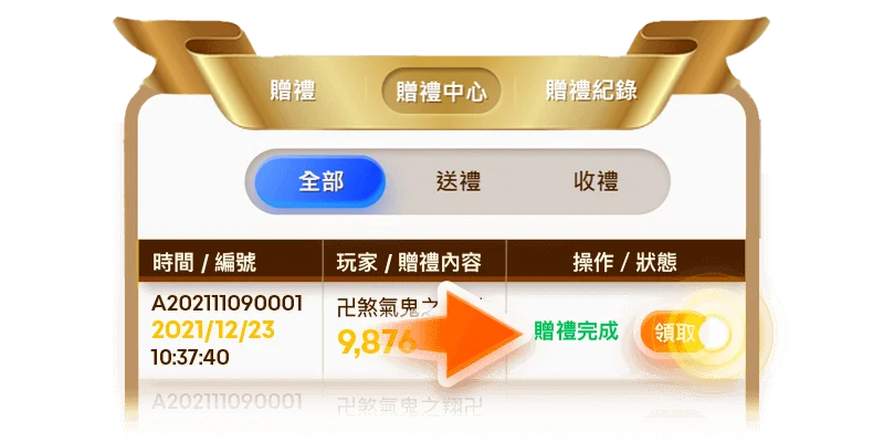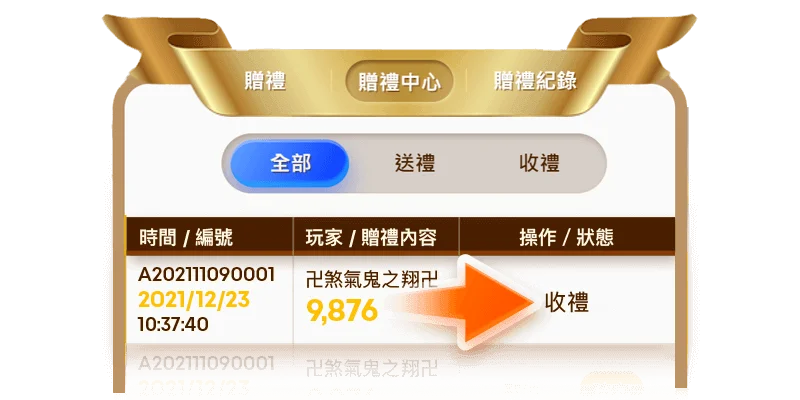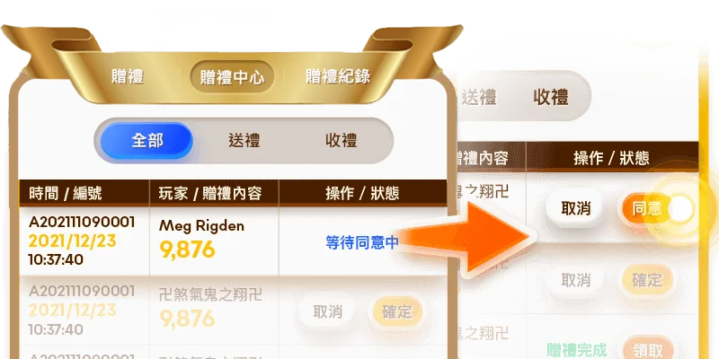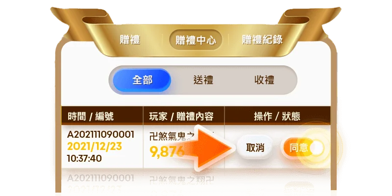等待送禮玩家確認完成後即收禮成功。(收禮完成可至贈禮紀錄頁籤查看。)