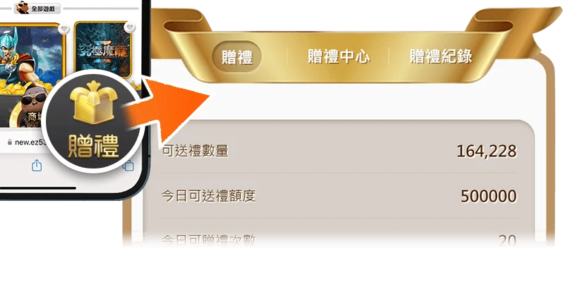 進入贈禮頁面。 按下大廳贈禮按鈕,即可進入贈禮頁面。